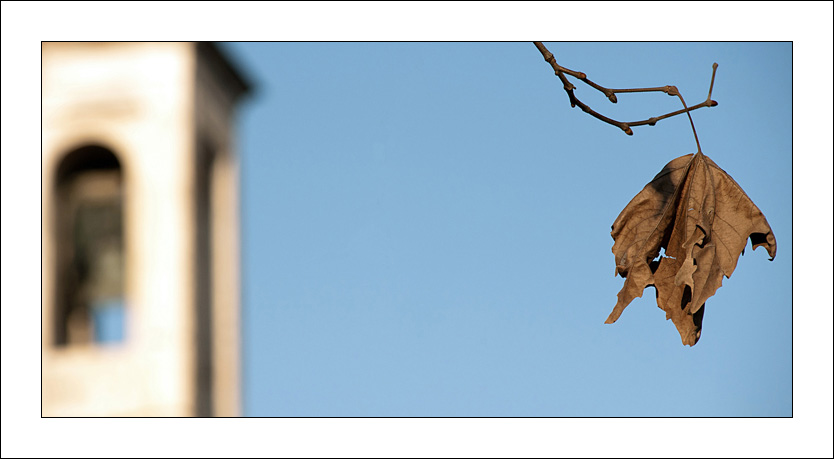 L'immagine ha come protagonista la foglia che ha resistito all'autunno e all'inverno e incontrerà un'altra primavera...forse..