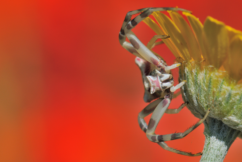 Il soggetto che hai ripreso e' un Tomiside un ragno che non costruisce la tela per predare bensi vive sui fiori e aspetta pazientemente il mal capitato di turno.