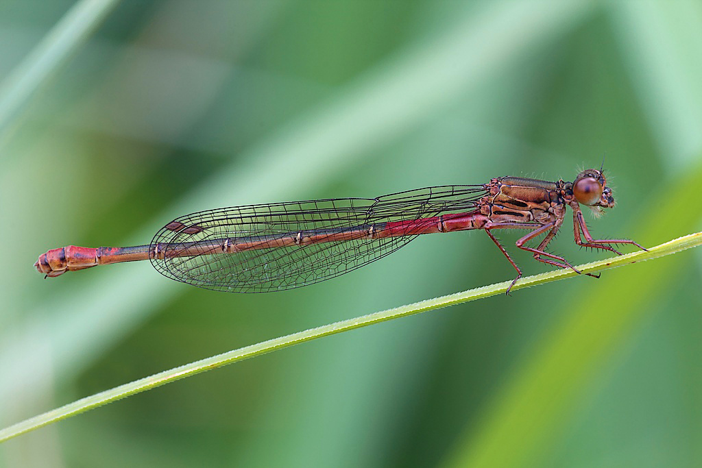 Bella immagine di una femminuccia di Ceriagrion tenellum nella sua forma typica... ottima nitidezza sul soggetto, lo sfondo anche se presente (e qui non ci potevi fare davvero nulla) non mi dispiace, quegli steli creano piacevoli geometrie...