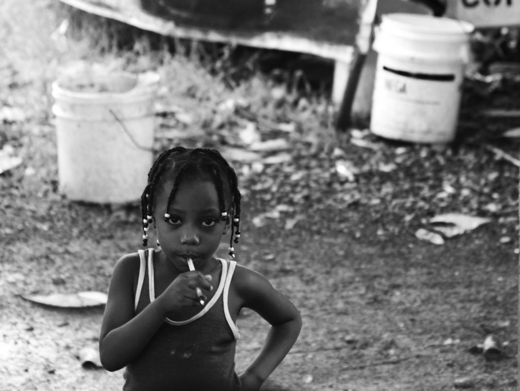 Credo che l'inquadratura sia un pò troppo ampia e si diluisce il carattere espressivo dell'immagine. Molto probabilmente nelle intenzioni dello scatto c'è anche un collocare la piccola in un contesto che riusciamo in qualche modo ad intuire, ..ma in fondo quello sfondo è solo un contesto di disordinato degrado che aggiunge poco alla lettura della persona e si confiura più come elemento di disturbo. Peccato soprattutto per la sovrapposizione tra la testa della piccola (scuro) ed il fusto bianco (chiaro) alle spalle.