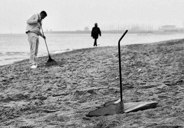 Il contesto e le figure sfumate dalla sfocatura trascendono per trasformarsi nell' idea di un momento rarefatto nel quale i pensieri aleggiano. Quella paletta turba l’ equilibrio; lo turba ma non punge. Era necessario inserirla per costruire, nel quadro della foto, la relazione che si è formata nella mente e che probabilmente ha spinto a scattare. Ma, almeno per come l’ hai inserita, ora la si percepisce (a differenza del resto che appare più evocativo) come una presenza concreta e logica e perciò in grado di incidere sulla capacità di trascendere che avrebbe avuto la scena senza di essa; scena che diventa così più informativa, più razionale. E quando la razionalità cresce, il fascino (che sta nel sottinteso) e l' emotività che non ha radici razionali, regrediscono.