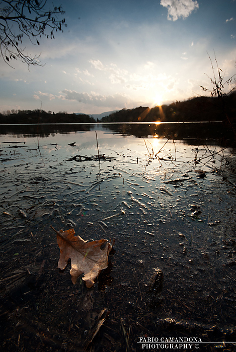 La foglia, insieme alla nitidezza dell'insieme, regge questa foto, senza di essa sarebbe stato il classico scatto banalotto di paesaggio, un esempio di come un accorto uso di oggetti in primo piano possa valorizzare una fotografia.