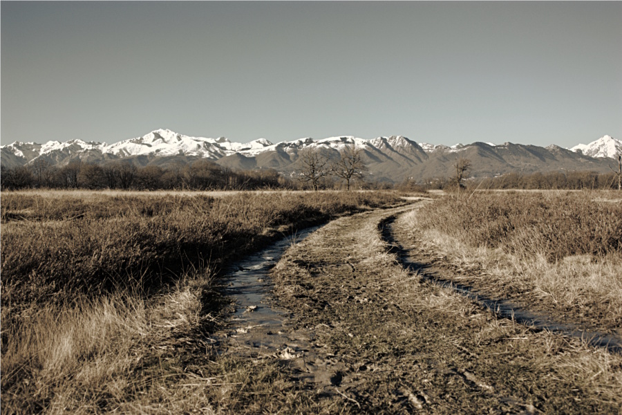 Un colore un po' strano del cielo che tuttavia non mi spiace affatto. Ottima la linea dei monti. Avrei anche osato un taglio panoramico rimuovendo un po' di terra... Ok!
