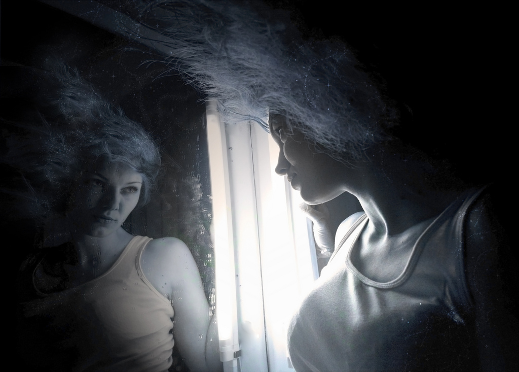 Una chicca il colore della maglietta che si vede nel rifelsso più scuro mentre è bruciato dalla luce forte diretta.