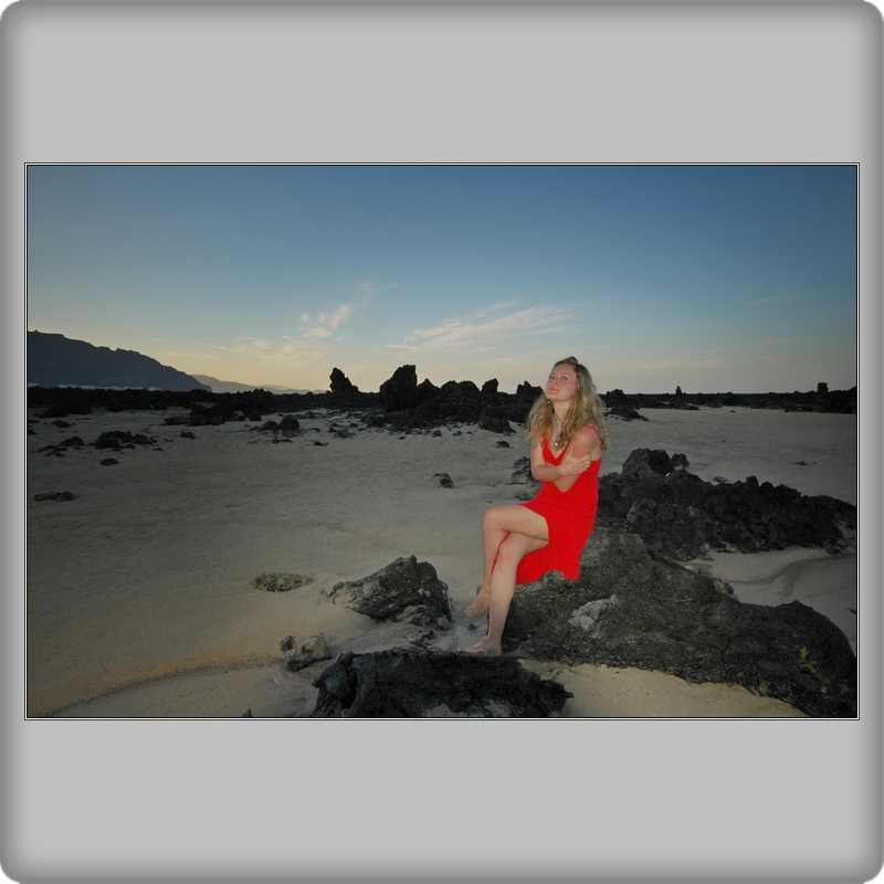 Con l'alta marea è una laguna con l'acqua molto poco profonda, a sera con la bassa marea ho giocato a fotografare Volha fra i rigagnoli formati dall'acqua che ritorna al mare ...