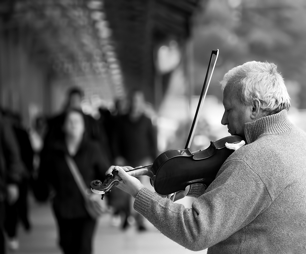 Fantastica...fantastica ripresa colta nel momento migliore quando tutti i personaggi in secondo piano sono rivolti verso il musicista e non di spalle, come se tutti stessero andando verso di lui anche solo per ascoltarlo.