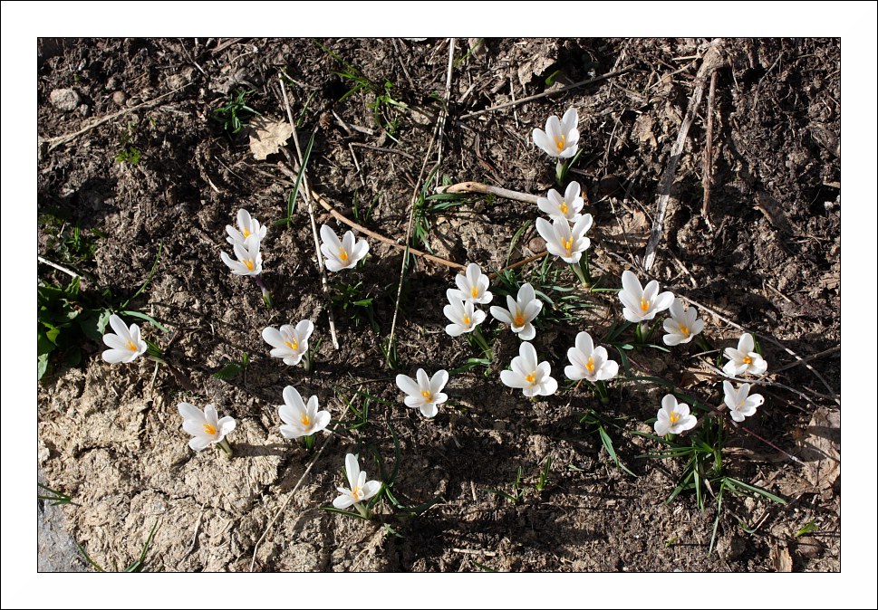 Non amo molto le foto ai fiori fatte dall'alto ma in questo caso visto il terreno arido e questi bellissimi fiori che sbucano come per magia devo dire che non è male la tua scelta.