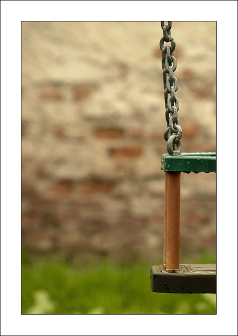 dettagli sospesi in sfondi sfocati in modo molto ma molto intelligente, quel tanto che basta per farci intuire gli elementi ma anche nasconderli per non togliere il pacoscenico ai particolari dell'altalena....