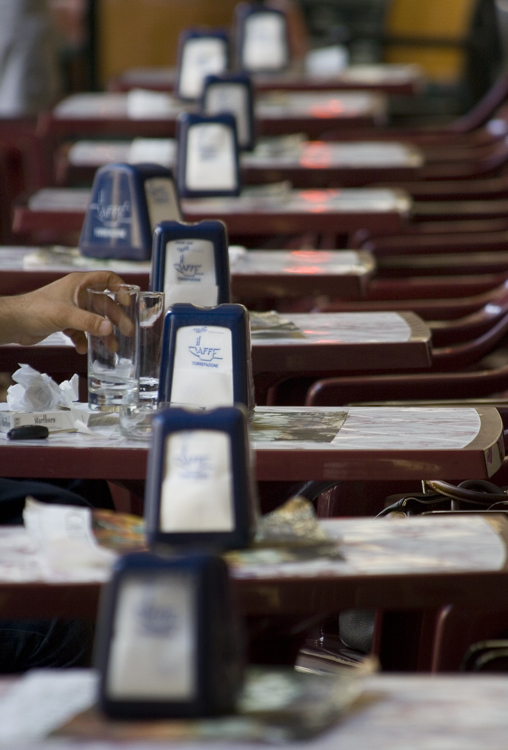 Simpatica la prospettiva e l'effetto di ordine sparso dato dal non perfetto allineamento dei tavolini e dei portasalviette... conferiscono maggiore autenticità alla ripresa...