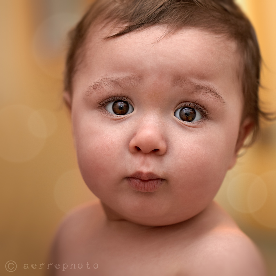 Il bimbo sembra che voglia comunicarci tutto il suo stupore, con quegli occhi meravigliosi che calamitano il nostro sguardo.