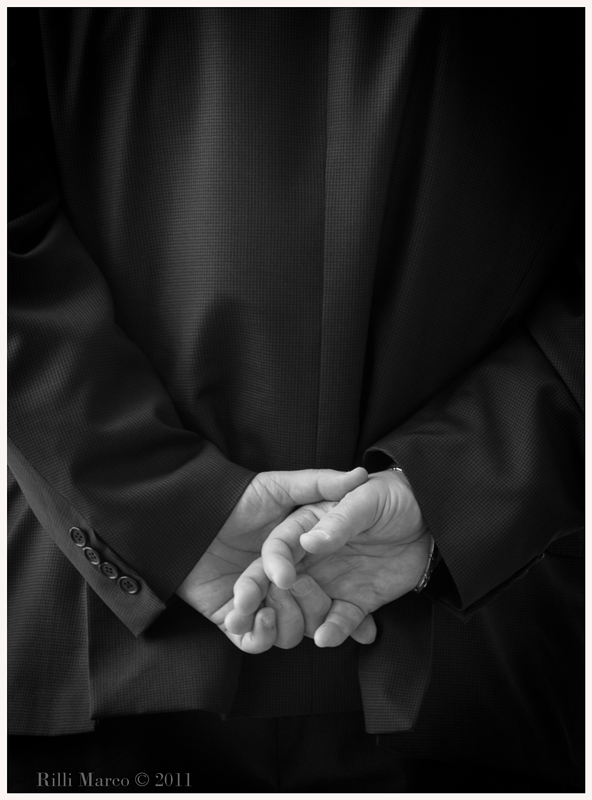 Gesto iconograficamente valido e tecnicamente ben ritratto: a titolo personale avrei sperimentato anche il taglio poco al di sotto delle mani giunte, eliminando quindi la parte al di sotto della giacca.