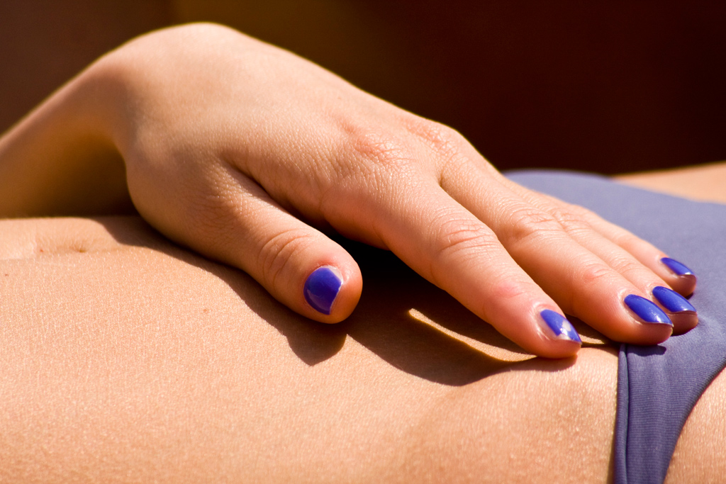 Leziosa la ragazza... unghie e costume della stessa tinta, particolarità ben messa in evidenza.