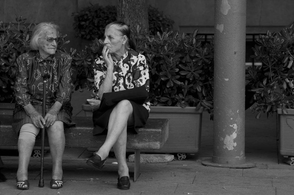 Mi piace l'espressione delle due donne. Non mi piace l'inquadratura, troppo dispersiva a destra e il b/n, troppo grigio e privo di contrasto.