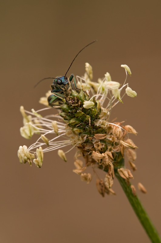Quando ormai la giornata volgeva alla fine ecco che mi imbatto in questo minuscolo insetto che stava pranzando col polline del fiore.