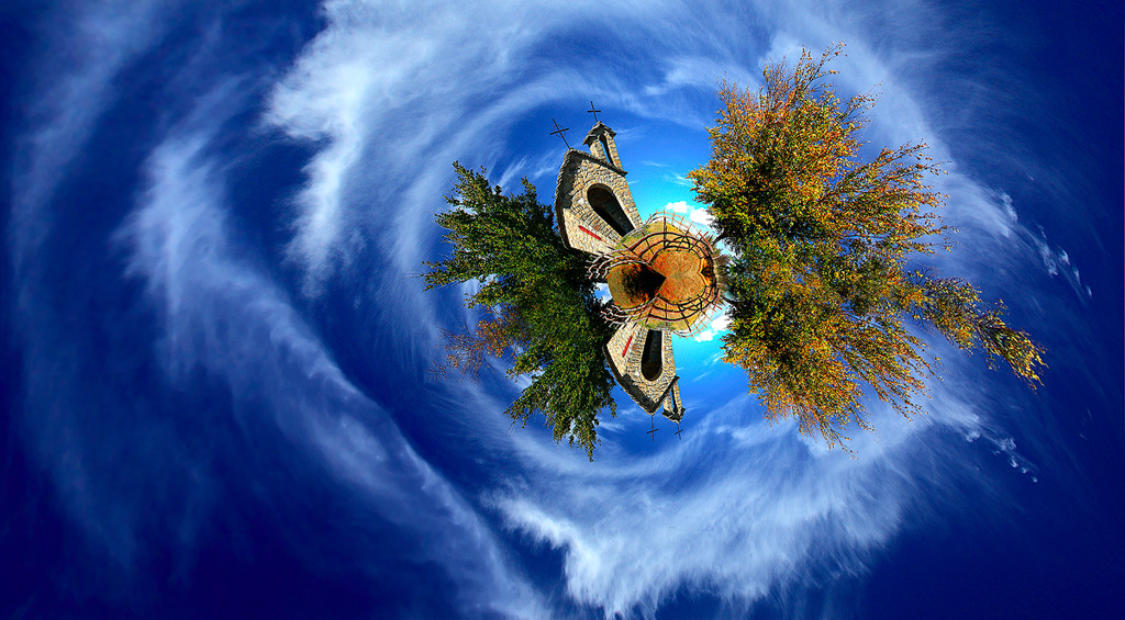 Ho voluto proporre questa immagine perchè il cielo e le nuvole prendevano la forma dell'acqua quando viene colpita da un oggetto che cade dall'alto.