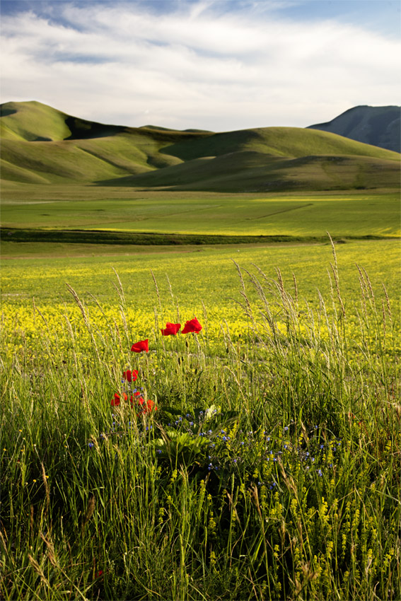 Penso che sia proprio una bella immagine, con la giusta quantità di elementi che consentono di apprezzare la bella profondità del paesaggio; bella luce, forse il cielo un po' "magro" rispetto alla densità della terra e delle ombre, magari è rimediabile?