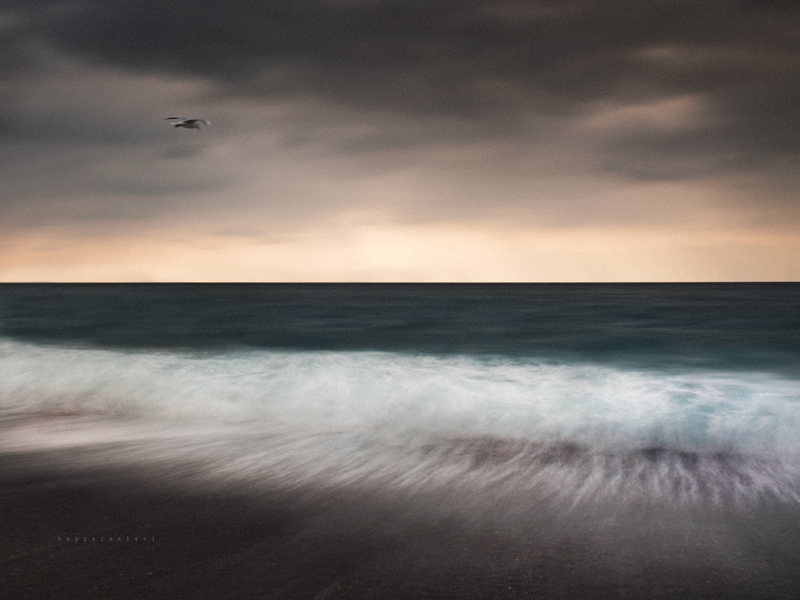 Senza gabbiano. Il motivo d'interesse è l'onda. La tensione è con l'orizzonte.