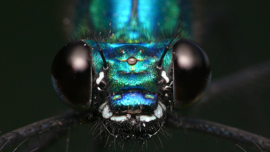Prova a scattare a priorità di diaframma, visto che usi il treppiede, e così il tempo lo sceglie la fotocamera. Ritengo che 1/250 di sec. non sia sufficente a far entrare un pò di luce in più che avrebbe reso più leggibili gli ommatidi nella parte bassa.