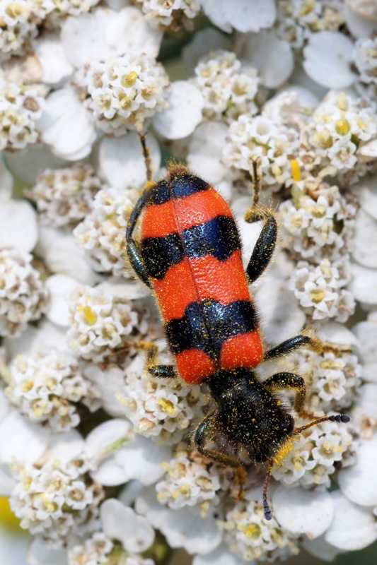 Le dimensioni sono un po' piccole per valutarne la nitidezza, comunque il dorso sembrerebbe sufficientemente nitido. Dato il colore è già difficile normalmente ricavare del dettaglio sul capo, in questo caso poi il polline ne nasconde quasi la sua visibilità, onestamente non me la sento di valutarlo.