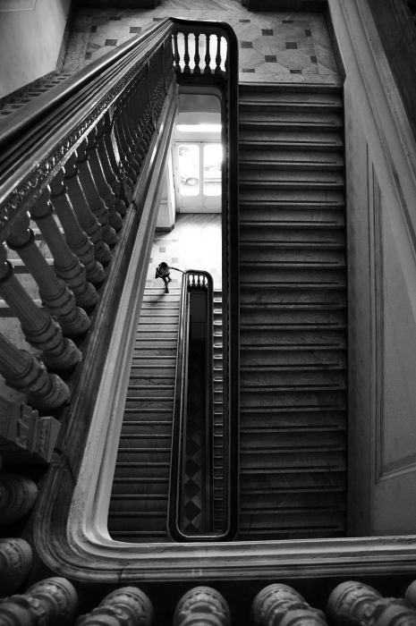 Mi piace molto la composizione e il bianco nero, mi da anche un certo senso di vertigine.