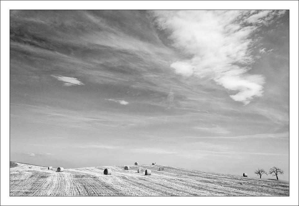 curioso, da due stereotipi stravisti: rotoballe su pendio e composizione "tutto cielo", sei riuscito a tirar fuori qualcosa di più originale. Mi piace  |