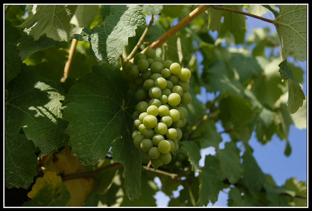 mi piace la luce colta sul grappolo,morbida che da un buon contrasto luce ombra..per il taglio avrei provato a elimanare la foglia in alto a dx che mi sembra un pò invadente.....