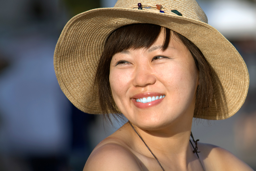 Al mio monitor i denti non sembrano avere una dominante azzurra, però ti posso confermare che era la ragazza orientale con la dentatura più bianca che io abbia mai visto.