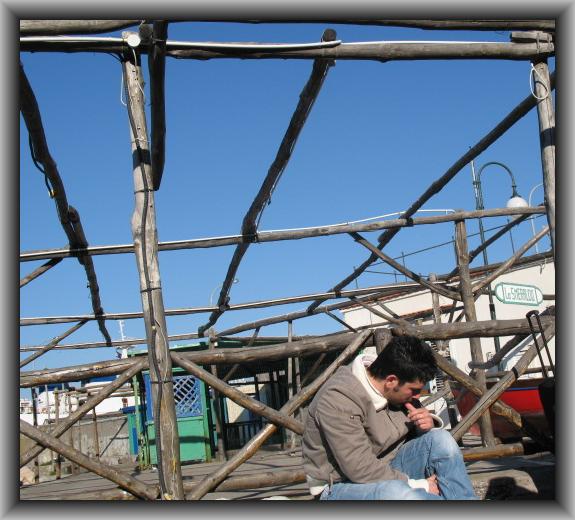 Uno scatto rubato che mi ha fatto pensare ai pensieri del ragazzo, intrecciati e senza orizzonte, come i pali.