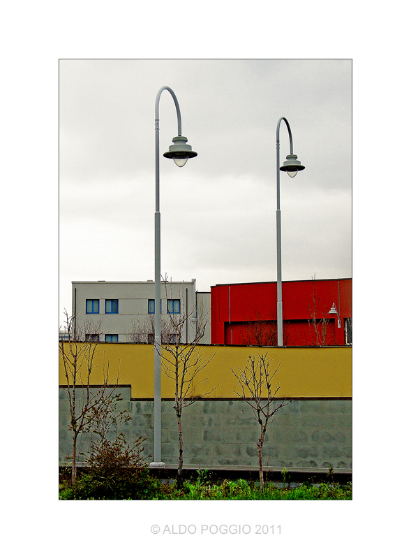 lampioni slanciano la composizione verso il cielo che opportunamente