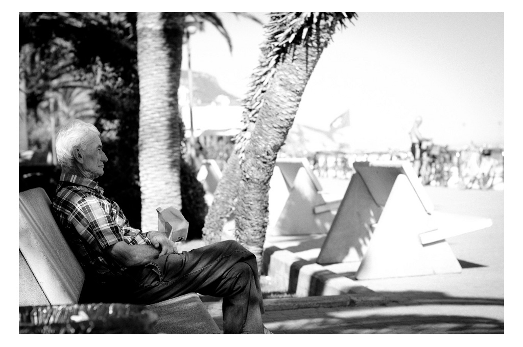 L'espressione del signore ripreso sembra davvero sottolineare il titolo da te proposto per questo bello scatto. Il contrasto della sua calma serafica contro il brulichio marittimo consolida il principio da te esposto. Trovo il b-n di notevole fattura,morbido ma con tutta la gamma dei grigi. I miei complimenti. Ophy