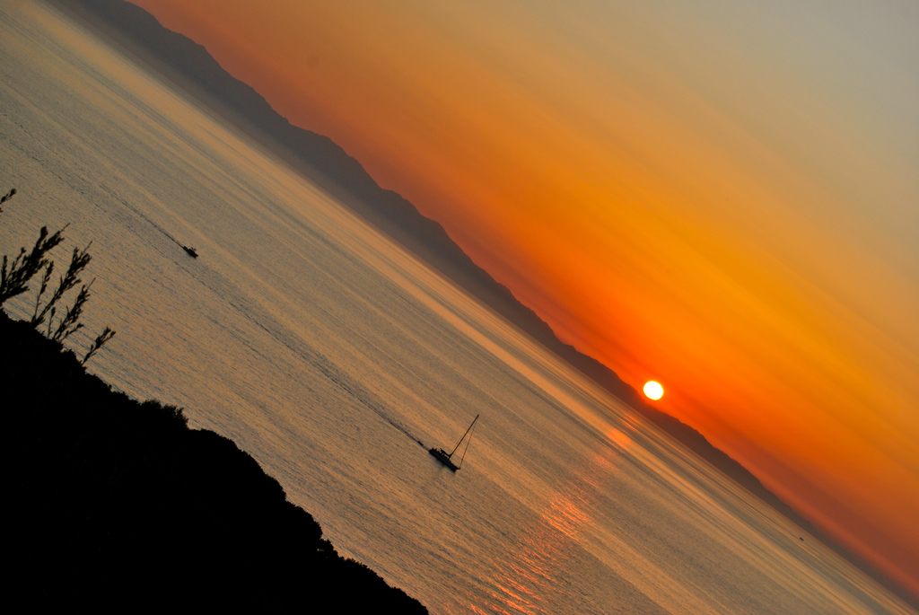 Il sole posizionato nella conca della skyline della costa, le due barche nei punti "giusti", la vegetazione in primo piano utilizzata come cornice, tutti ottimi dettagli per una bella composizione.