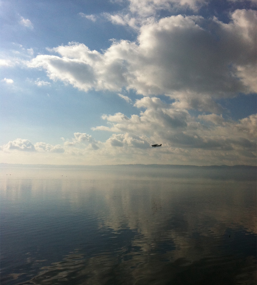 Un piccolo aeroplano passava sul silenzio piatto del lago... Ne ho approfittato per uno scatto "on the fly"