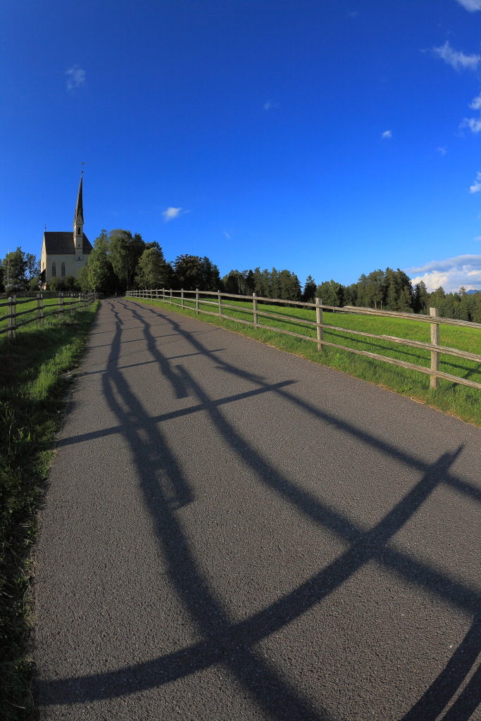 Mi piace molto la prospettiva ed il "binario" che queste ombre riescono a creare, portando l'occhio verso la chiesa.