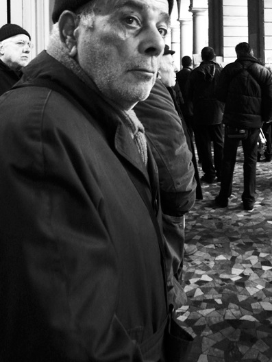 Mi sono soffermato sullo sguardo di questo signore. Espressivo eppure enigmatico, scrutatore inconsapevole come uno che pensa, rimugina, avendo lo sguardo da qualche parte, ma in realtà non è focalizzato su nulla. Ci accade spesso! Il taglio ed il primo piano contribuiscono a rafforzare questa sensazione. Poi, come sempre, ci si domanda: chi è? dove sta? E' un attimo! e solo quell'attimo, l'attimo successivo cambia repentinamente lo scenario: il potere della Fotografia di congelare "quell'attimo", custodendolo e rendendolo irripetibile, passato, e perciò misterioso. Vuoi vedere prima che c'era ma non puoi, vuoi vedere dopo, lo stesso!