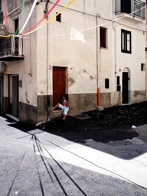 Buona l'idea di usare i nastri e le loro ombre per dirigere lo sguardo sulla ragazza, la composizione però mi pare un po' larga a destra.