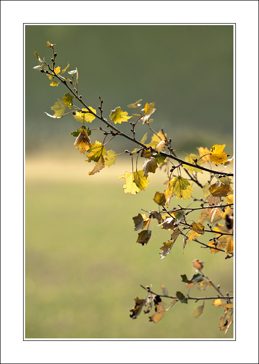 Le foglie che, oramai stanche, si fanno attraversare dalla luce e si vestono di questi ultimi raggi prima che il loro destino si compia...