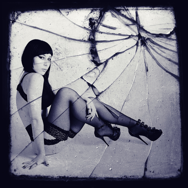 Indubbiamente il valore aggiunto di questo scatto, è la sovrapposizione della texture "vetro/specchio" rotto, che ci consente comunque di apprezzare quel che leggiamo al di sotto di tale elemento, come trasparenza, o riflesso di una realizzazione in studio molto ben gestita, dalla scelta del look della modella, sino alla gestione della luce, od alla resa tonale di questo carico viraggio. Mi piace.