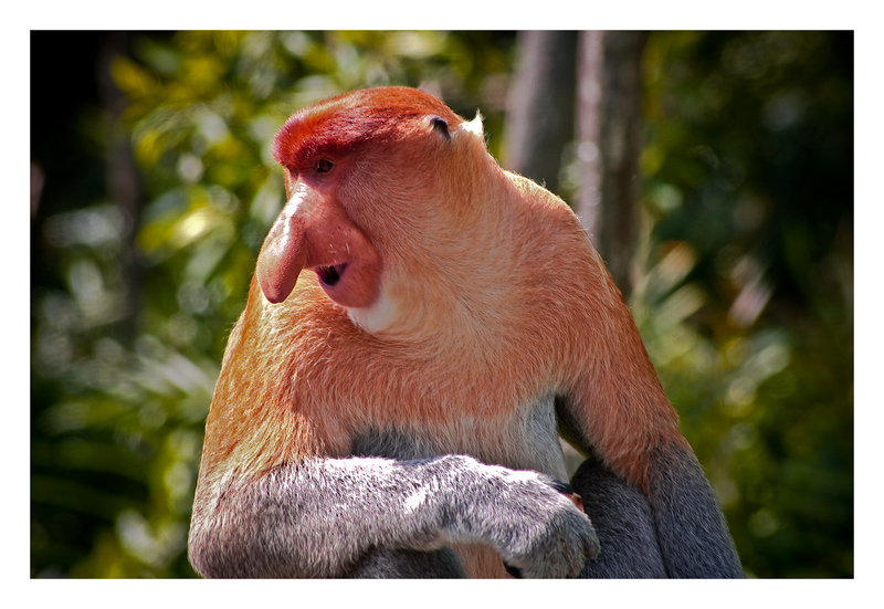 è un esemplare maschio di scimmia Nasica..... si è vero hanno degli atteggiamenti molto simili ai nostri! |