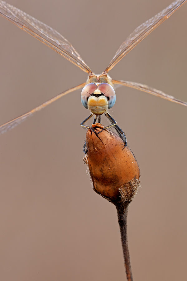 | Ciao Alberto, hai fatto una scelta azzardata cercando qualcosa di diverso, il pensiero sulla composizione è opinabile, forse includendo tutte le ali del Sympetrum nel fotogramma lo scatto a mio avviso migliorava.. La maf selettiva sugli omattidi mi sembra buona, le tonalità dei colori sul soggetto pure, quegli dello sfondo un pò meno...