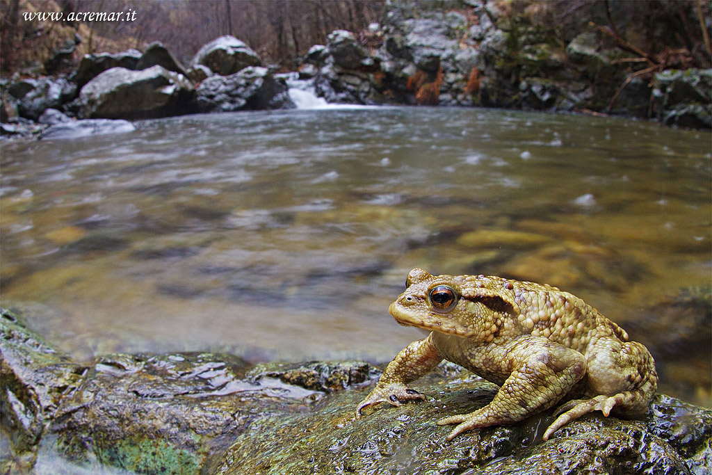 Foto scattata sotto la pioggia (clima ideale per gli anfibi ) a un bel rospo maschio che si aggirava vicino al laghetto.