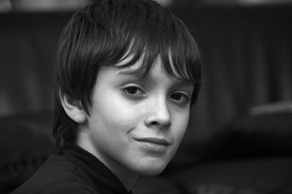 L'angolo di ripresa è perfetto a registrare la leggera torsione della testa con la quale il ragazzo rivolge il suo sguardo in camera, accentuando la tensione espressiva dello scatto.