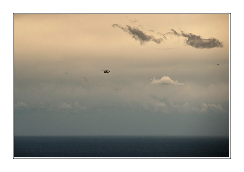 E allora, ce lo vedo bene questo elicottero errante, che percorre un mare indefinito, verso chissà quale meta.