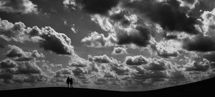 Luca, l'ho voluto io: due figure, irriconoscibili, da immaginare noi stessi li sul limite a passeggiare tra le nuvole