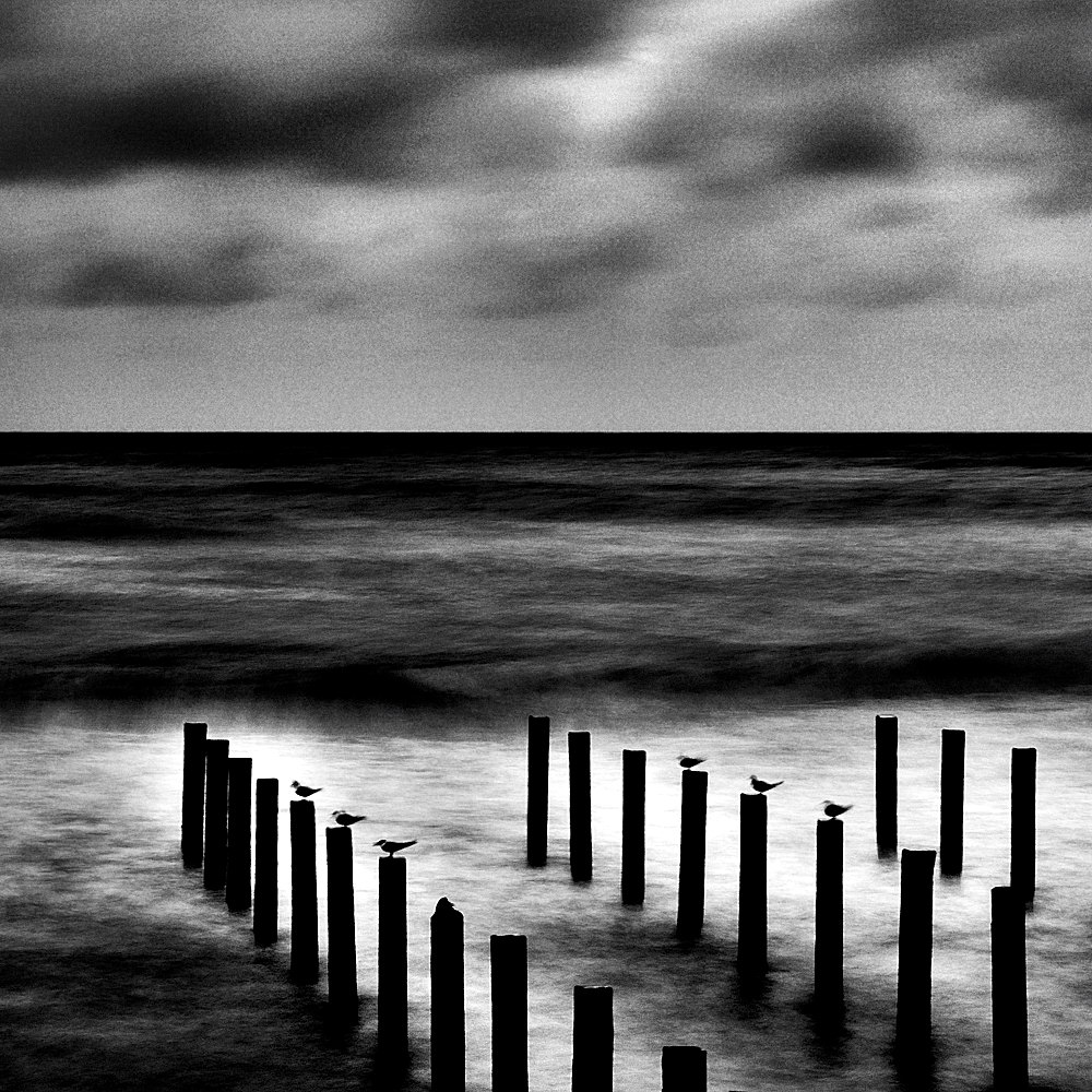 La grana presente è effettivamente tanta... ma non so, in questo caso direi che non ci sta nemmeno tanto male. Trovo che sia un ottimo b/n: i bianchi, i neri e i vari grigi son collocati in maniera praticamente perfetta all'interno della composizione. I bianchi nella parte bassa, ad esempio, fanno risaltare decisamente bene i paletti scuri con sopra i volatili Wink