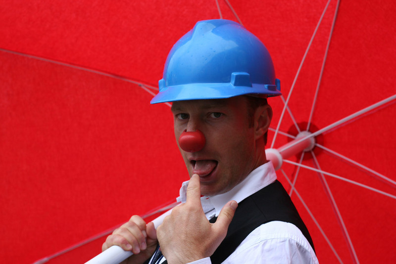 Un bel contrasto di colori Ok! una posa così così Mah una luce sul visto davvero troppo bassa, che di fatto fa scomparire il ritratto, a fronte del grande rosso dell'ombrello Wink