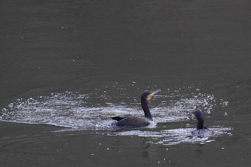 Mi piace l'inquadratura Davide, giusto aver compreso il ribollio per dare l'idea del movimento dei 2 cormorani..... ma l'acqua era davvero così nera?