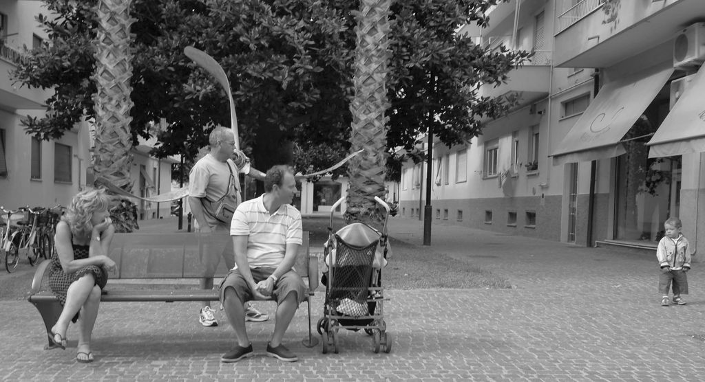 Posso essere un po' cattivo? Osservando una giovane coppia seduta su una panchina, il minimo che ci si aspetti è che le loro attenzioni siano rivolte verso il proprio bimbo che scorazza in liberta per la piazzetta con quel suo fare da ribelle, perciò da questo punto di vista non c'è molto di sorprendente.