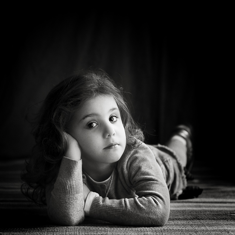 Bella foto, insolito punto di ripresa, ma giusto e molto coerente con la postura della piccola, splendido il bw (come ormai è tuo costume).