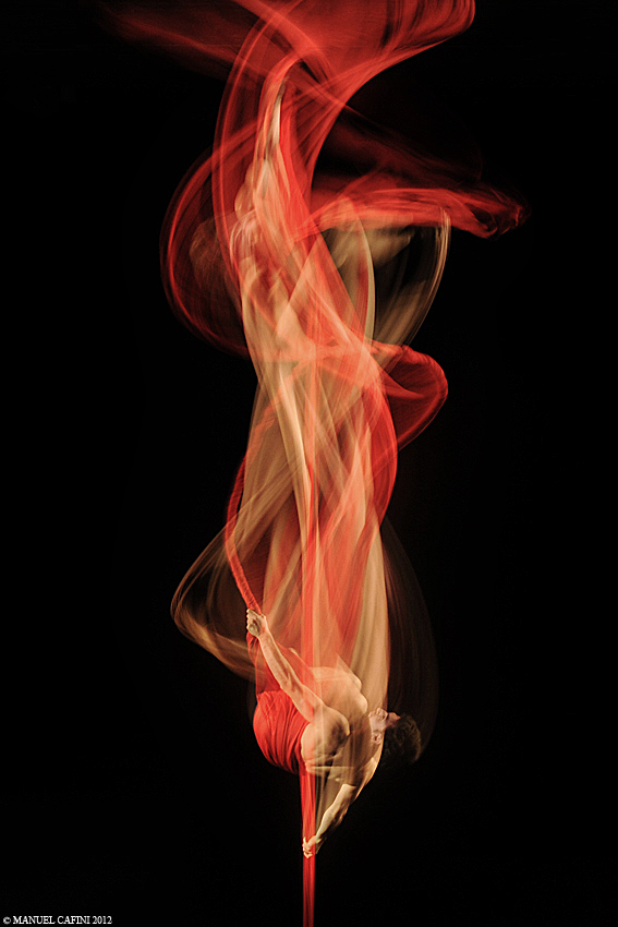 buona la scia che si lascia sopra l'artista srotolando il drappo con le sue evoluzioni....