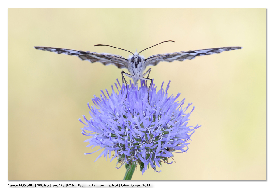 gran bella composizione, a me capita che l'occhio vorrebbe andare sulla farfalla ma viene attirato dal fiore, non so se era questa la tua intenzione
